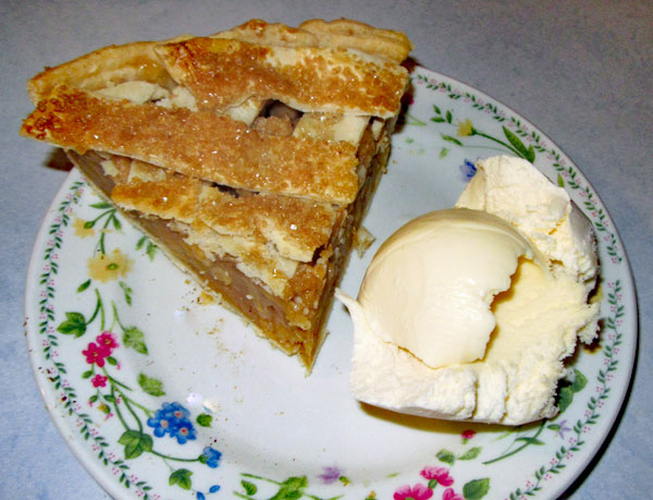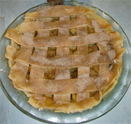 Mix 1 tsp sugar with 1/2 tsp cinnamon and sprinkle on top of the lattice pie strips. Place pie in oven and immediately reduce heat to 350°F. Bake for 60 minutes and until pie is bubbly. Cool on wire rack. Best served at room temperature with vanilla ice cream.