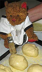 For a nice glossy brown and crunchy crust, lightly brush top of each roll with egg white. Sprinkle lightly with coarse salt. Place rolls in oven and immediately reduce the temperature to 400°F. | |