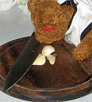 Remove 5 cloves from a clump of fresh garlic. Using a large knife, press the flat part of the blade against the garlic to "gently smash" them. Doing this makes the garlic release its flavors into the sauce while simmering. Put the garlic into the sauce mixture.