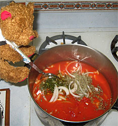 • 1/2 tsp sugar (to cut acidity of tomato base)